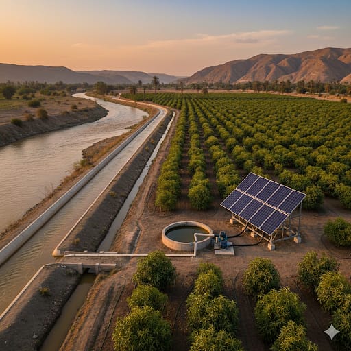 Beneficio clave: Desde los centros de acopio de agua (reservorios de 50-200 m³) se riegan mediante sistemas de goteo, impulsado por la energía solar y garantizan riego nocturno estratégico cuando la planta lo necesita.